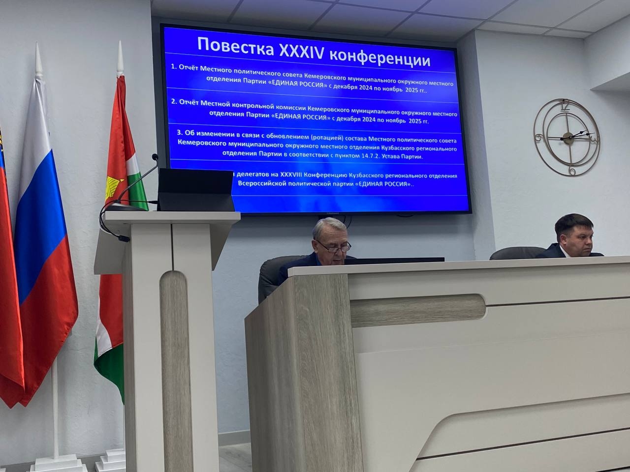 В Кемеровском муниципальном округе состоялась XXXIV конференция местного отделения Партии «ЕДИНАЯ РОССИЯ». В работе конференции приняли участие Глава Кемеровского муниципального округа Дмитрий Владимирович Павлов, члены местного политического совета и местной контрольной комиссии, секретари и делегаты от первичных отделений партии, депутаты Совета народных депутатов Кемеровского муниципального округа.